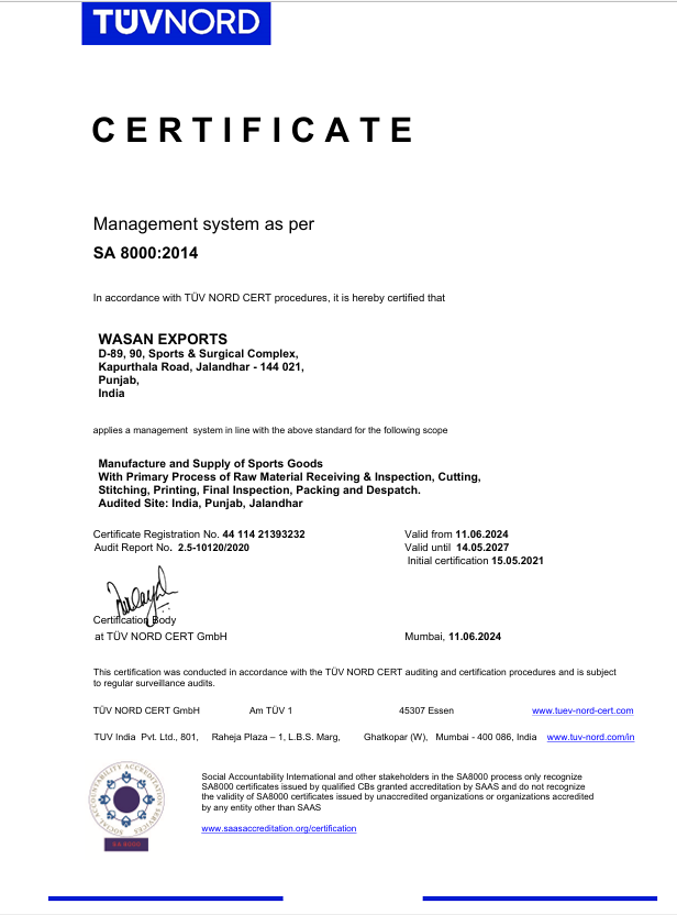 Our company has the oldest registration number (SINCE 1950) and was the FIRST sporting goods manufacturing factory in India to be ISO certified.